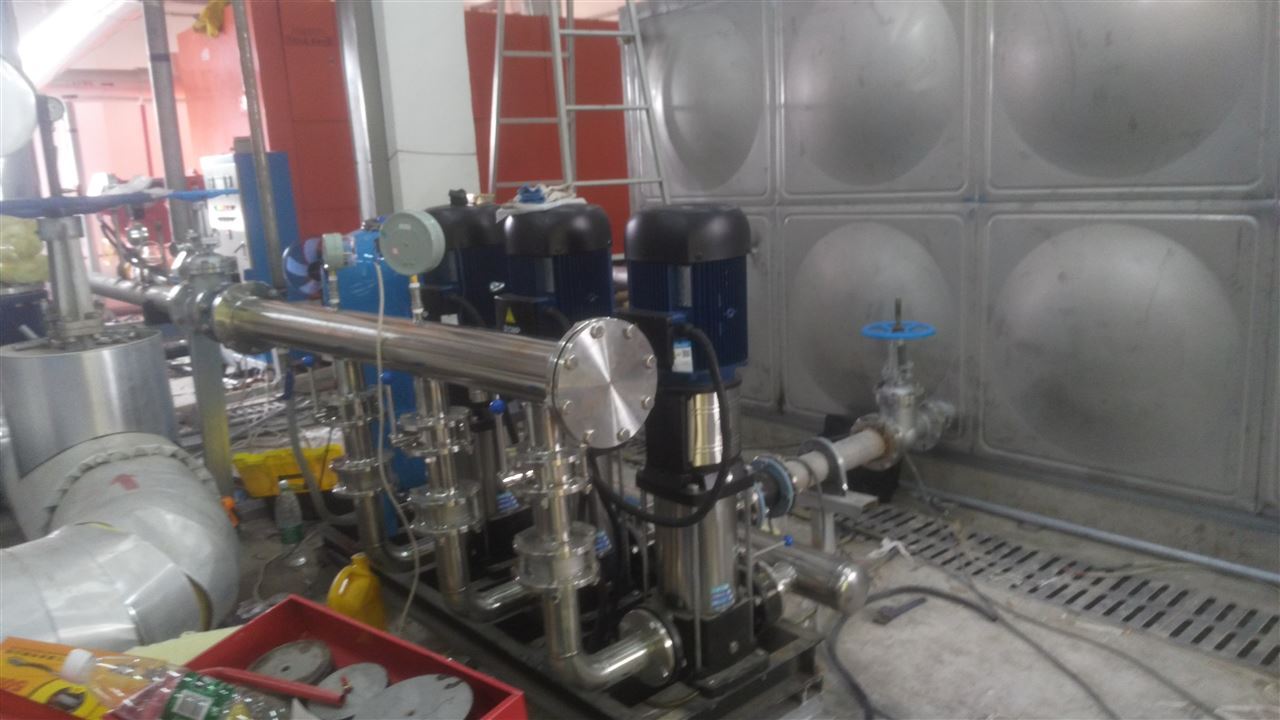 安徽蕪湖鳩江區(qū)方特水上樂園二次供水設(shè)備項(xiàng)目合同,按照?qǐng)D紙?jiān)O(shè)計(jì)要求,流量72m³/h,揚(yáng)程40m配三臺(tái)7.5kw水泵 兩用一備。該設(shè)備用于二次供水項(xiàng)目工程。恒壓變頻供水設(shè)備原理:自來水先打到水箱或者水池,設(shè)備接水箱將水增壓到用戶;